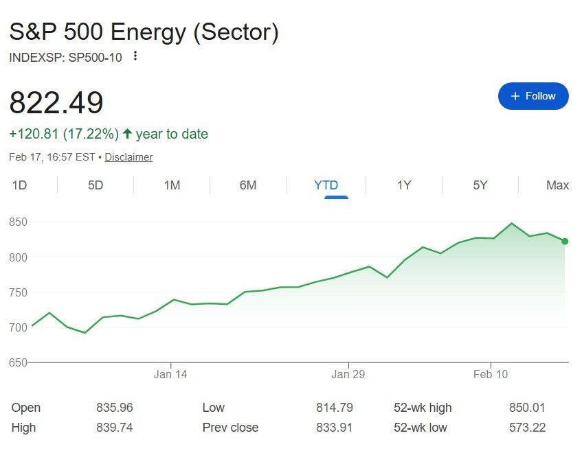 S&P 500 Energy sector index YTD chart. Source: Google