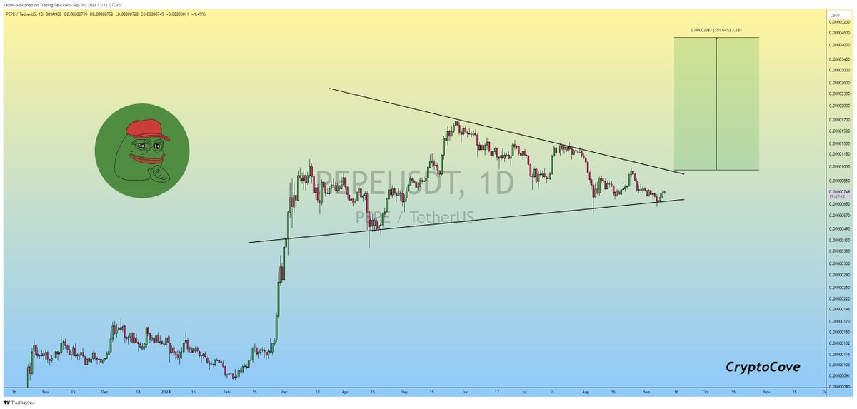 “$PEPE Still Consolidating inside the Bullish Symmetrical Triangle & Still I’m Bullish on it..!! Looks Primed for another +300% Bullish Rally in Q4.”