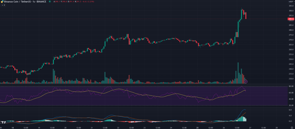 BNB, which dropped to $200 after June due to the lawsuit filed against Binance and the negative events experienced, today exceeded $300 for the first time in 6 months.