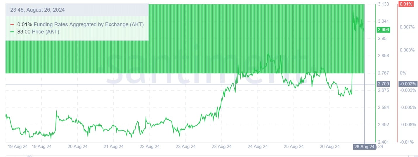 Also, the demand for long positions was further supported by a positive Funding Rate aggregated by the exchange. This reflected investors’ confidence with AKT price rising and overall future potential.