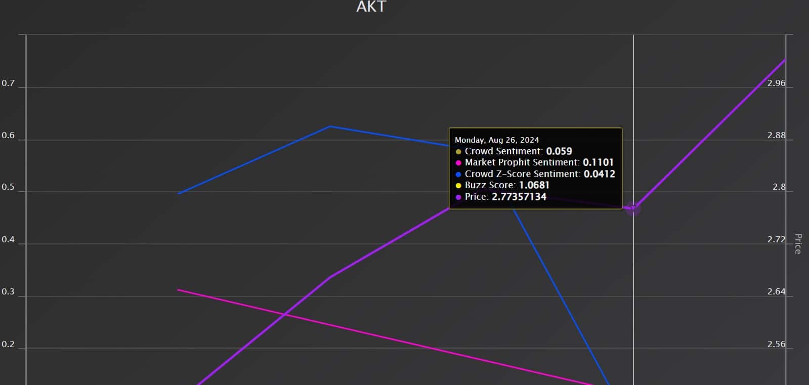 Besides the Integration by NVIDIA, AKT is enjoying high market favorability, with investors showing a high positive outlook. AMBCrypto’s analysis of Market Prophit showed the altcoin enjoying positive market sentiment.