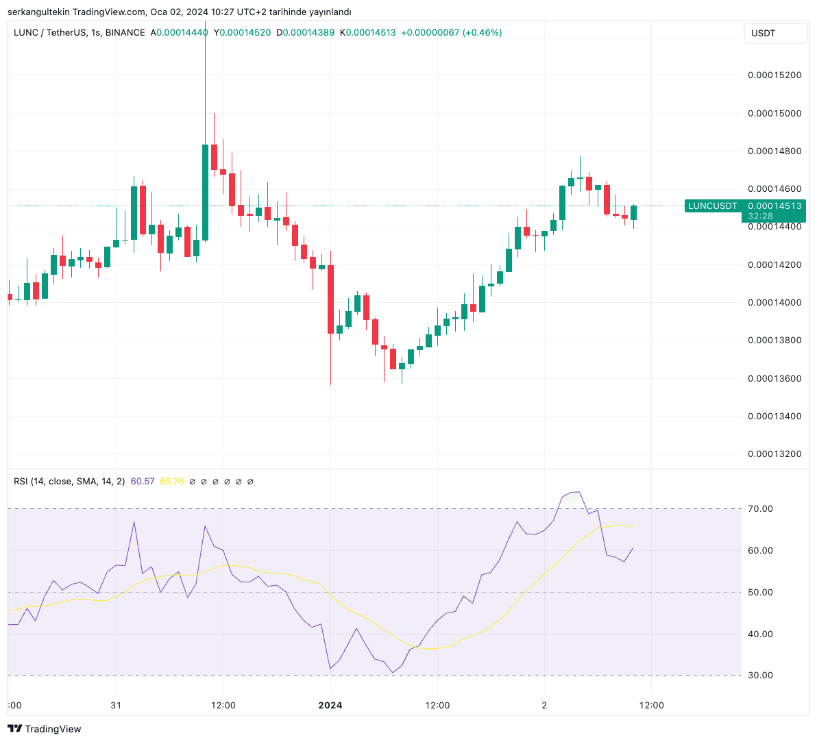 Terra Luna Classic (LUNC) and USTC prices are rising amid the broad market rally and Binance LUNC burn mechanism. At this point, the LUNC price has increased by up to 8% in the last 24 hours. It currently continues to trade at $0.000145.