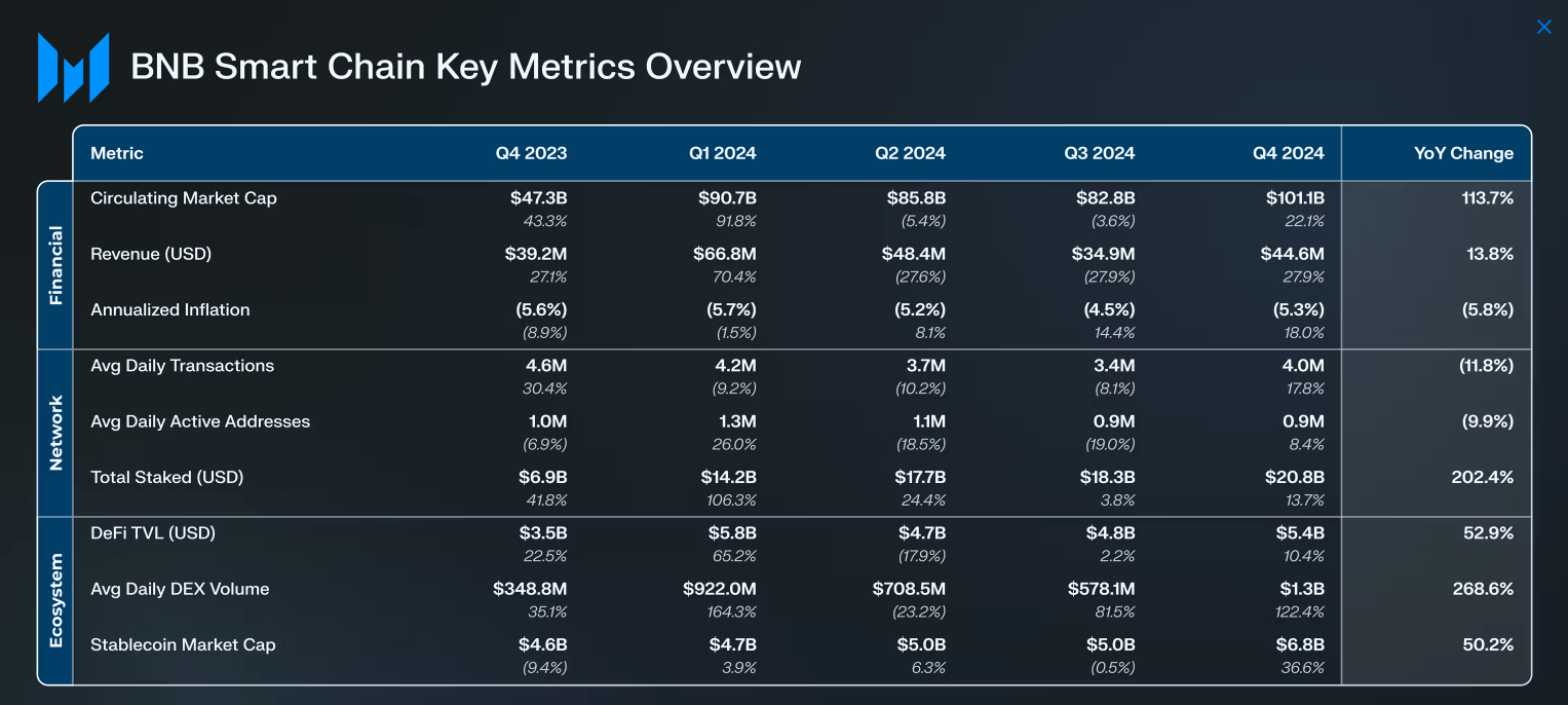 Although the last year has been somewhat turbulent for BNB, the fourth quarter of 2024 was a pivotal moment. Recent data shows that BNB’s market capitalization reached a solid $100 billion year-on-year (YoY).