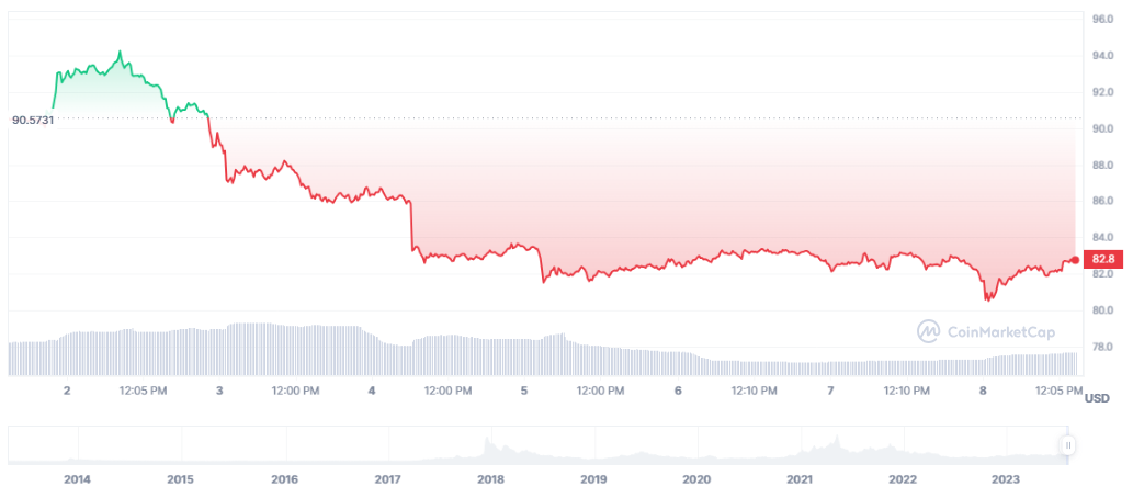 The current market figures reflect a small 24-hour uptick of 0.2% and a seven-day decline of 8.5% with a current price of $82.57 on CoinGecko, painting a cautious picture for LTC’s short-term performance.