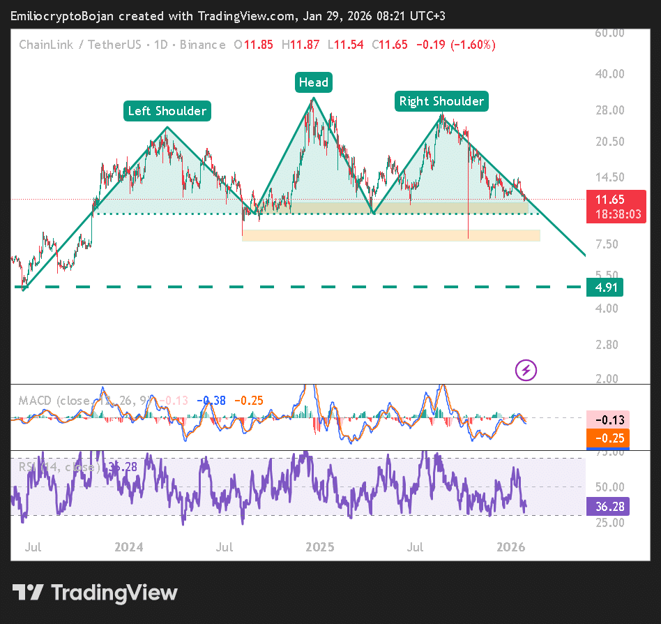 On the daily timeframe, LINK printed a clear bearish head and shoulders pattern.