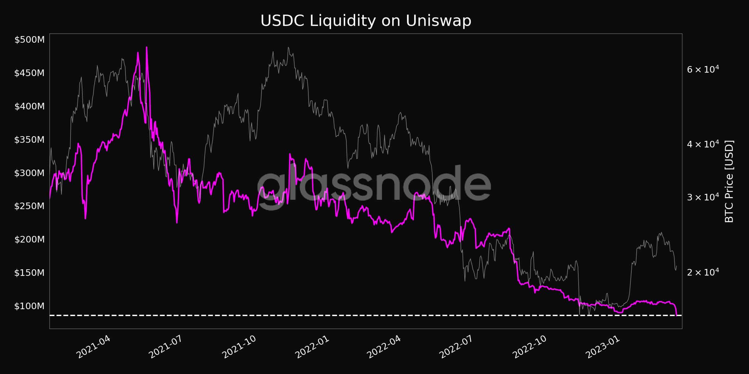 One indicator of the declining interest and rise in FUD was the decreasing liquidity of USDC on Uniswap. At press time, the liquidity of USDC on the DEX reached a 2-year low of $85,190,702.41.