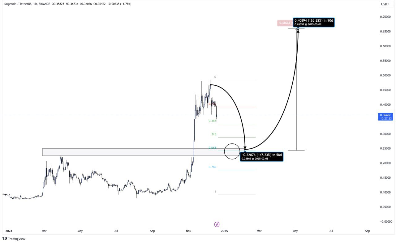 A rebound could push DOGE to $0.40894 and potentially $0.65557, a 165% rally from current levels.