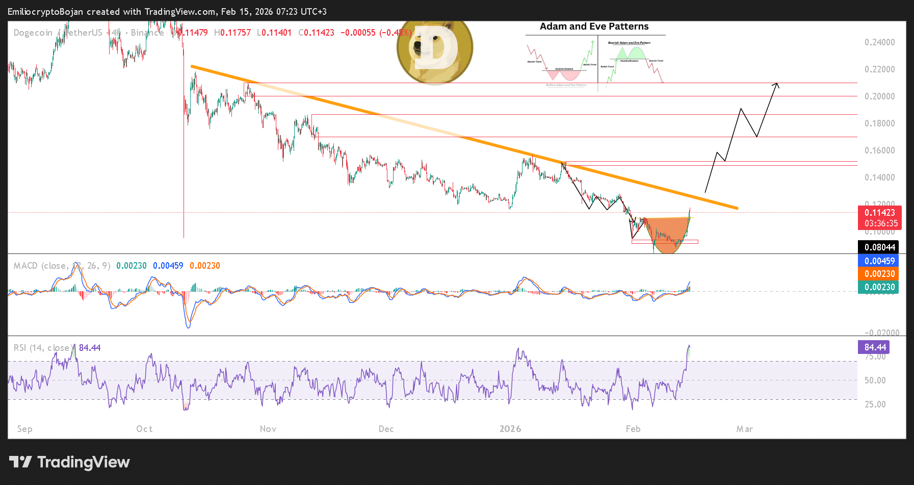 Following the rally, Dogecoin [DOGE] completed a bullish Adam and Eve formation.