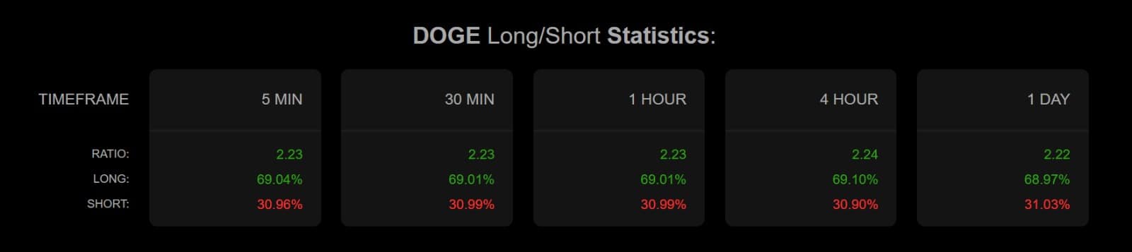 Additionally, Dogecoin’s traders are mostly getting into the market and taking long positions. As such, the Long/Short Ratio stood at 68.9% longs vs. 31% shorts, per Coinalyze.