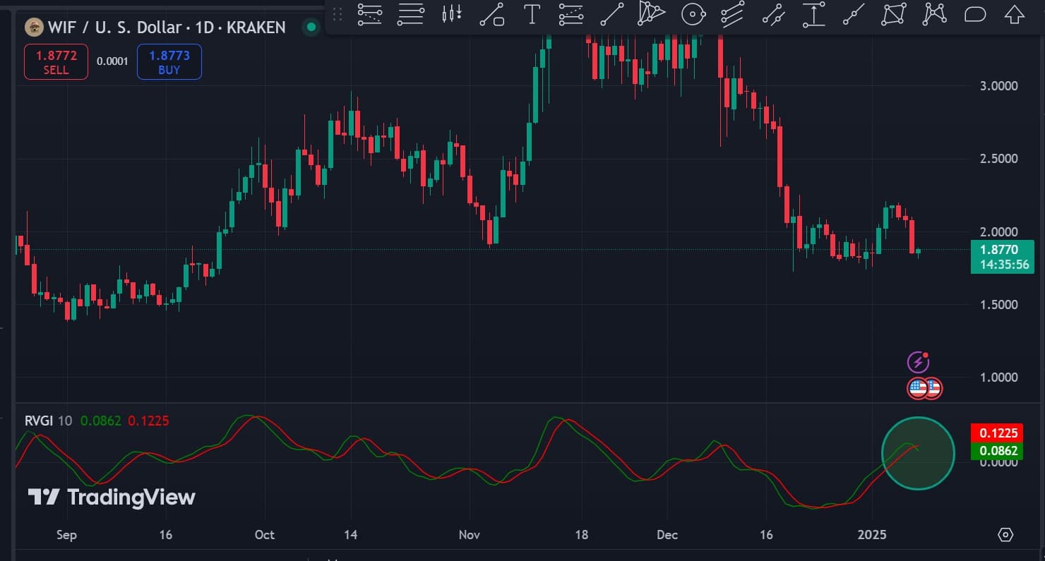 We can see this bearishness following WIF’s bearish crossover on its RVGI over the past day. This crossover showed that the memecoin was experiencing a strong downward pressure as selling intensified.