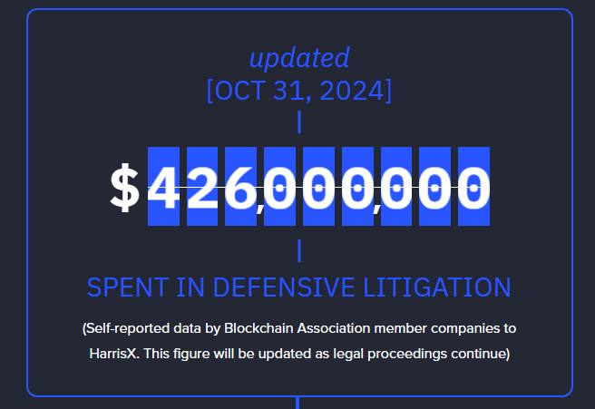 Blockchain Association, a crypto-focused lobby group, announced that crypto companies have spent around $426 million fighting lawsuits filed by the US Securities and Exchange Commission (SEC) under its chief, Gary Gensler.