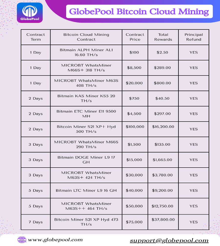 Globe Pool is a groundbreaker in cloud mining services in 2025. It utilizes a simple method to acquire cryptocurrency without requiring any initial financial commitment.