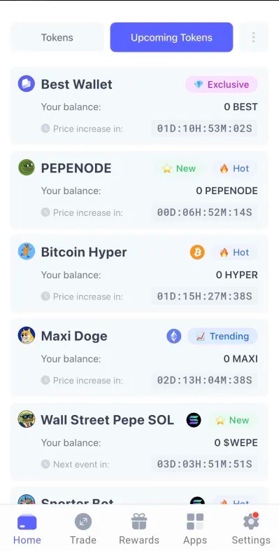 Best Wallet also allows users to hold both private and public keys, making them the only ones who can access their funds. And, if you are looking to invest in some promising upcoming cryptos, you can do that too in its Upcoming Tokens section, where you can browse and buy cryptos as they hold their early-stage token sales.