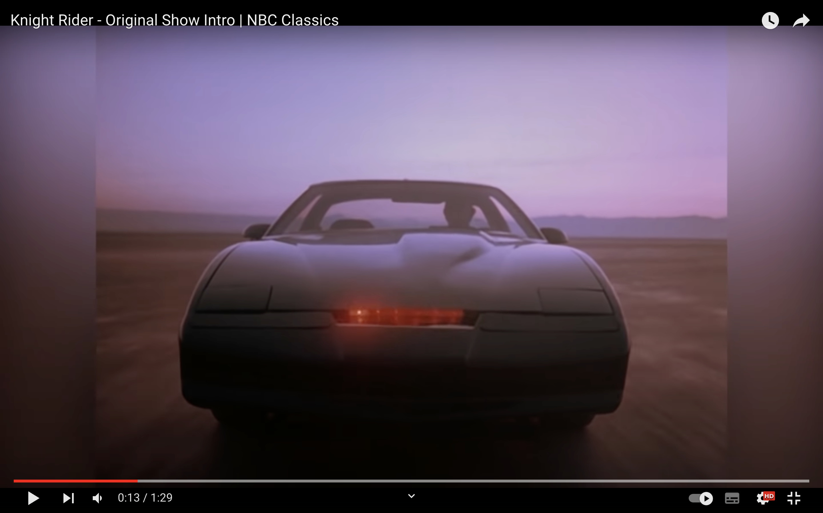 The Knight Rider theme was the first song to get VESA to play to be a rock star as his toy plastic axe as the guitar, sliding on his knees across the room as a 5 year old.