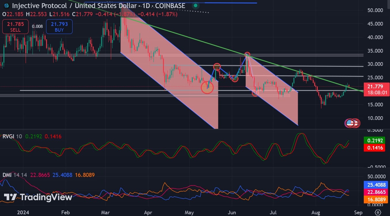 However, over the past seven days, INJ has made significant gains to trade at $21.77. This makes an 18% increase on weekly charts.