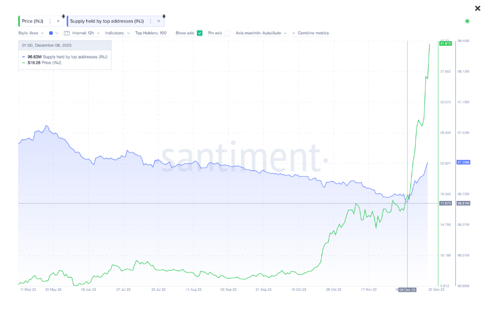 As of December 8, these wallets had 96.63 million units of the token, as seen in the chart above. But as of December 20, they had quickly added 460,000 INJ to their holdings, bringing their total value to 97.06 million INJ.