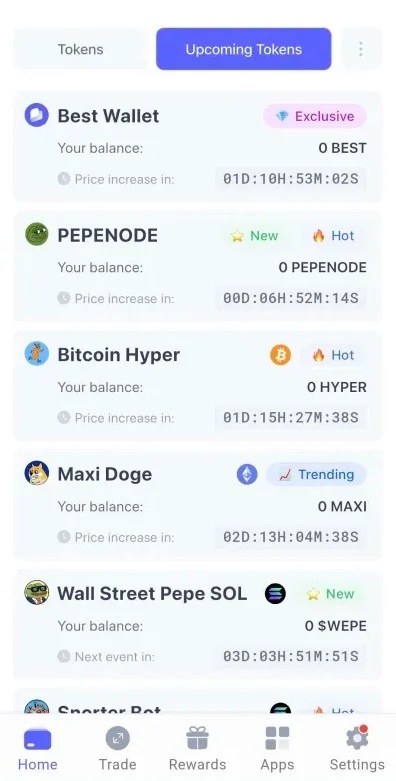 Finally, if you wish to invest in new cryptos, Best Wallet offers a section called Upcoming Tokens. This is its native launchpad, where you can browse early-stage token sales and invest in anything that attracts your attention before the project goes live and its token appears on the open market.