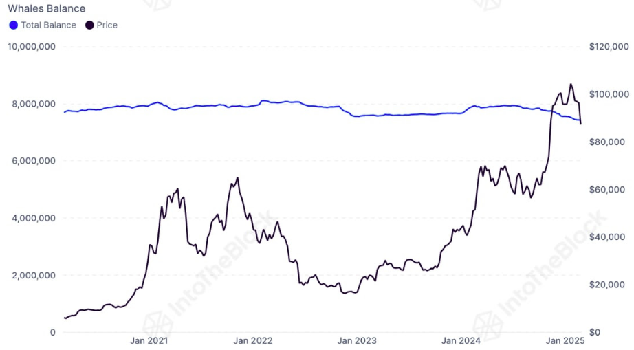 Bitcoin whale holdings have reached their lowest level in six years, raising concerns about the asset’s price trajectory amid its current price struggles. Interesting data from on-chain data analytics platform IntoTheBlock shows that the aggregate amount of Bitcoin held by whales has dropped to levels last seen in 2019.