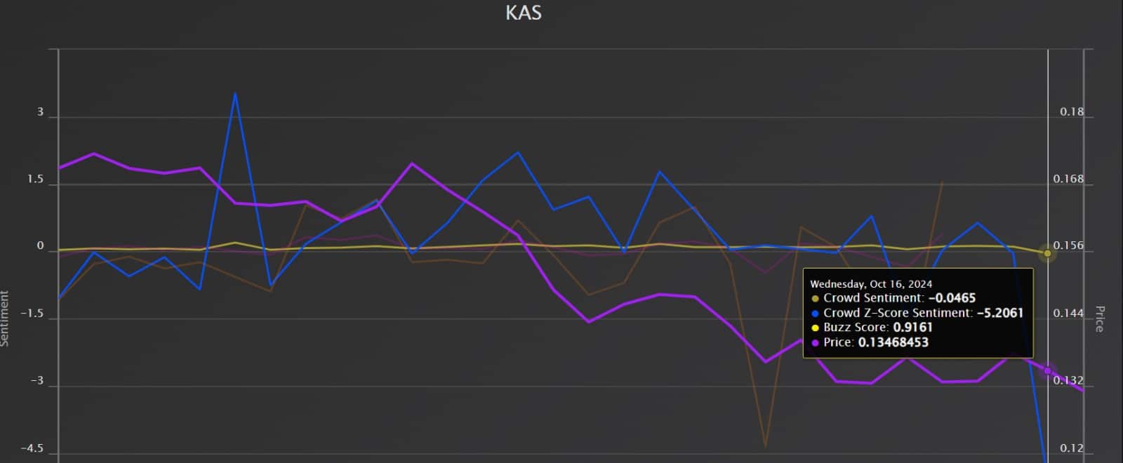 • KAS has declined over the past month, dropping by 26.49%.
