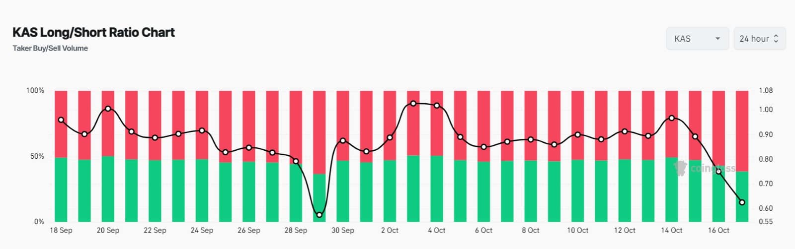Looking further, Kaspa’s Long/Short Ratio is below 1 after a sustained decline on daily charts. At 0.66, it suggested that short sellers were dominating, with most traders bearish.