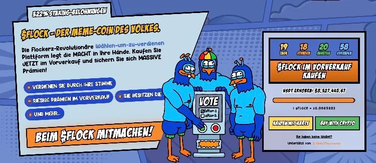 Ein weiterer Geheimtipp unter den neuen Meme-Coins ist Flockerz ($FLOCK). Dabei handelt es sich nicht einfach um einen weiteren Token, sondern um einen Coin, der Demokratie in den Vordergrund stellt.