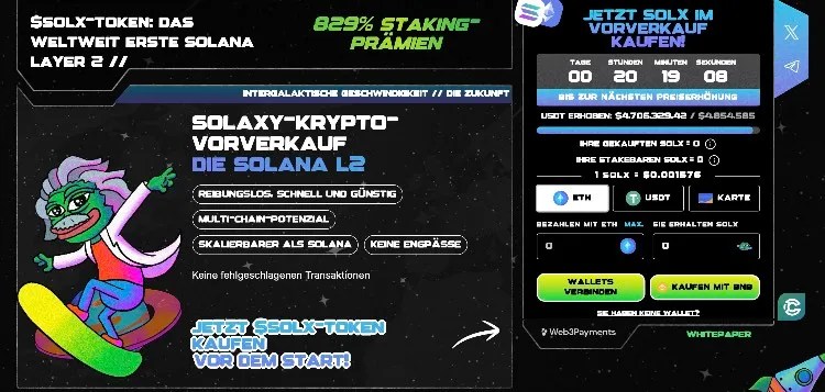 Einen ähnlichen Run erlebt derzeit der Meme-Coin Solaxy ($SOLX). Sein Zugang ist ein völlig anderer, schließlich setzt Solaxy vorwiegend auf sein technisches Alleinstellungsmerkmal. Bei dem Token handelt es sich um die weltweit erste Layer-2-Lösung für die Blockchain von Solana.
