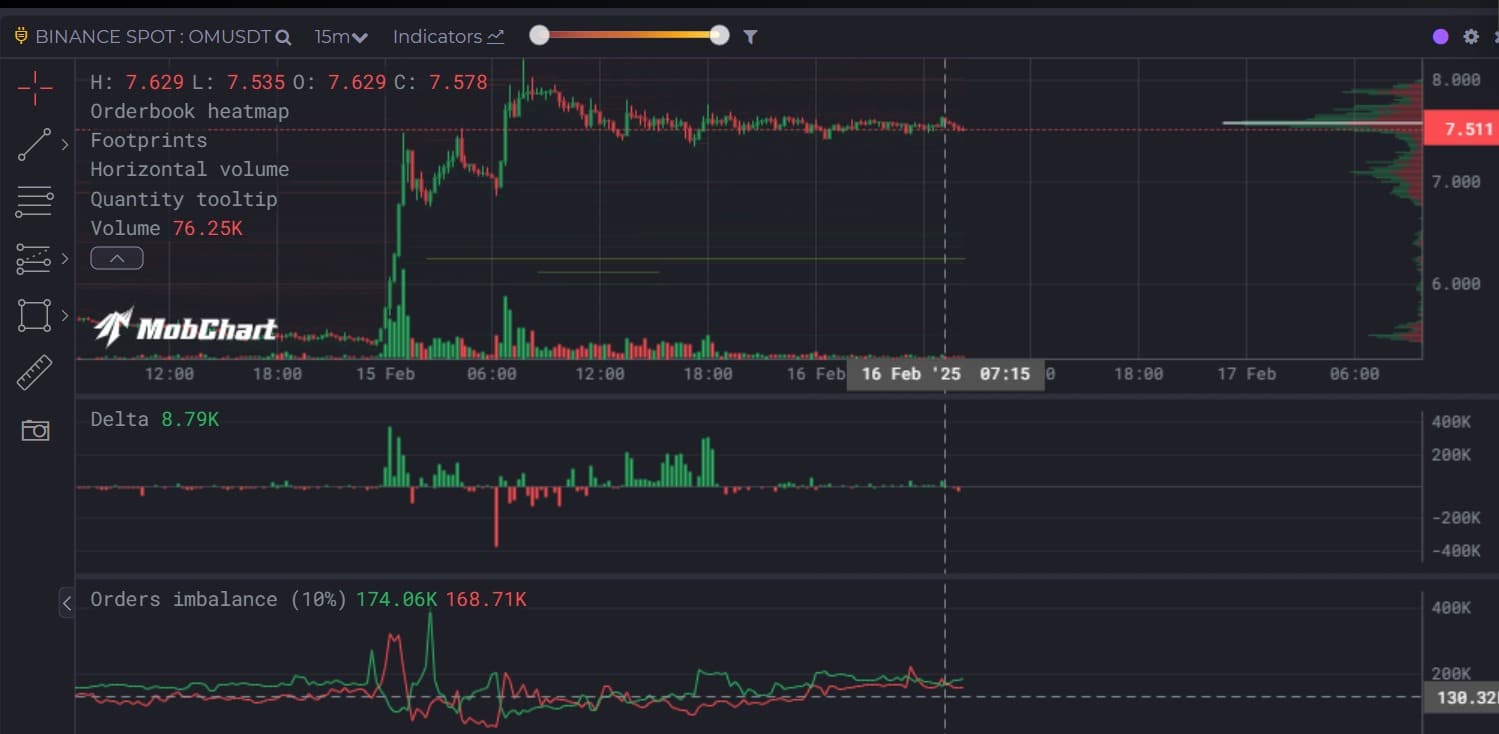 Since then, the altcoin has retraced, trading at $7.58 as of this writing. Also, OM saw a 35% rise in volume to $1.4 billion.