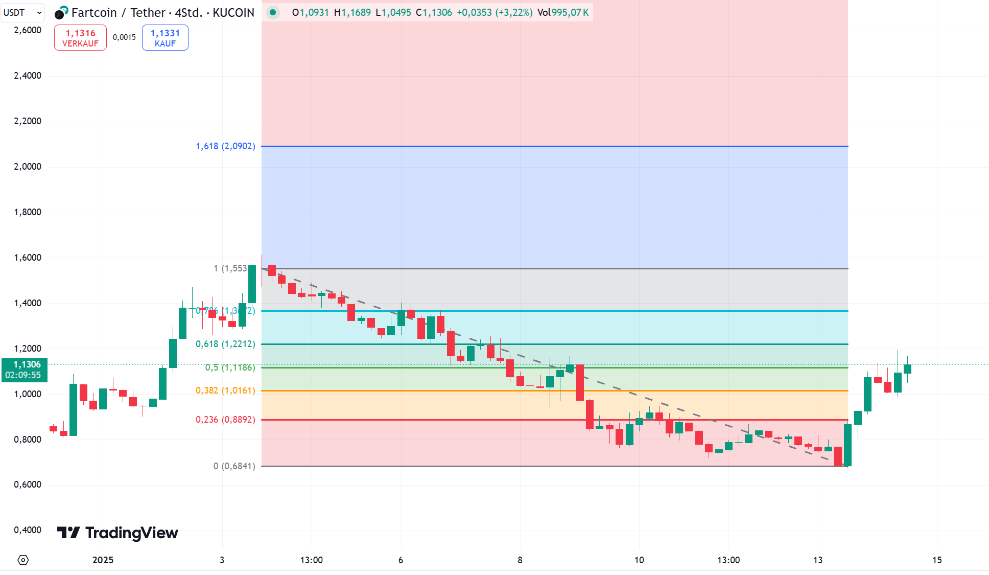 Fartcoin Chart mit Fib- Marken, Quelle: www.tradingview.com