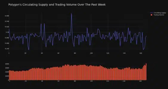 The chart below compares the price movement and volatility for Polygon over the past 24 hours (left) to its price movement over the past week (right).