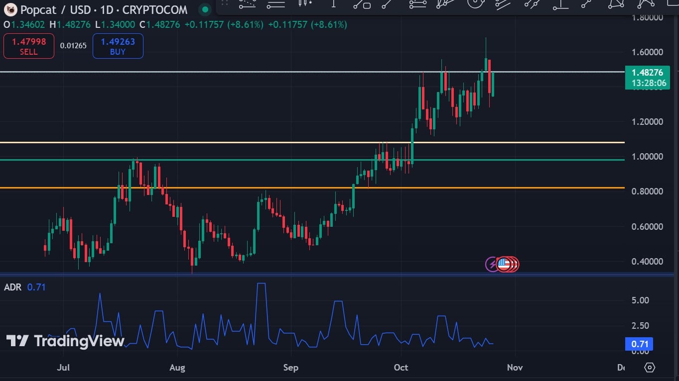In fact, at the time of writing, Popcat was trading at $1.47. This marked a 10.60% increase over the past week, with the memecoin gaining by 41.80% on monthly charts.