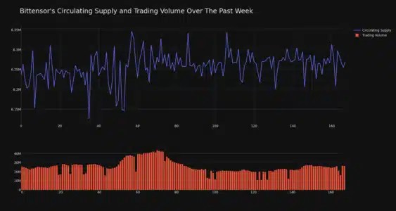 Bittensor’s trading volume has climbed 3.0% over the past week along with the circulating supply of the coin, which has increased 0.56%.