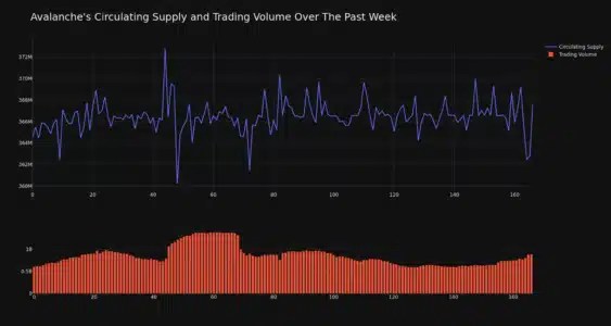 The trading volume of Avalanche (AVAX) has climbed 46.0% over the past week, moving in tandem, directionally, with the overall circulating supply of the coin, which has increased 0.85%.