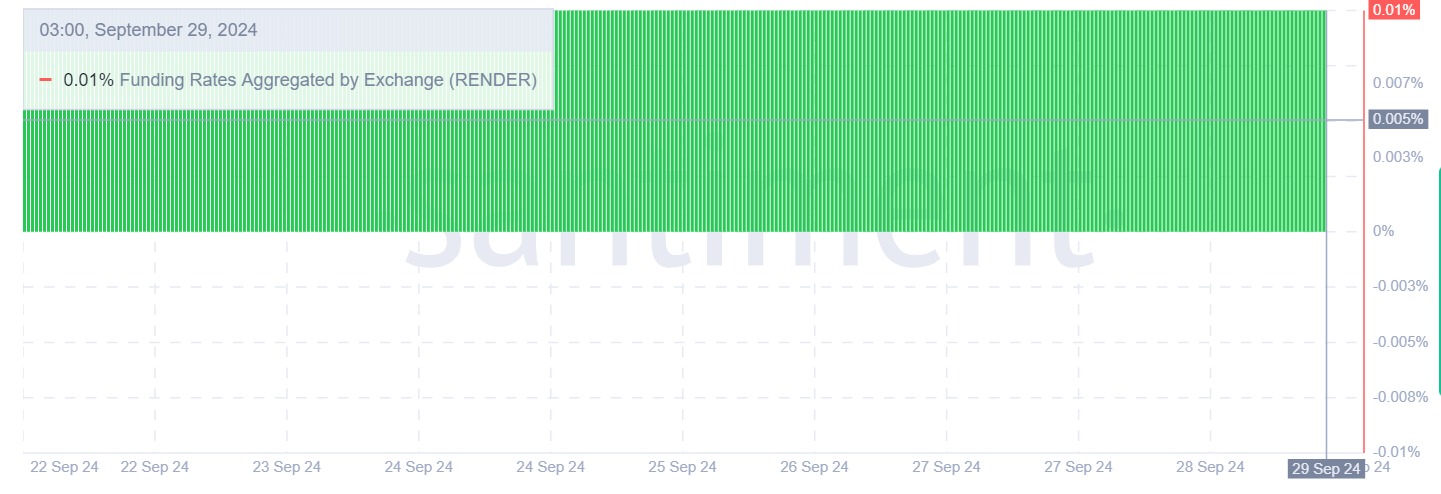 For starters, Render’s funding rate aggregated by exchange has remained positive over the past week. A positive funding rate indicates that long position holders are paying short sellers to hold their trades.