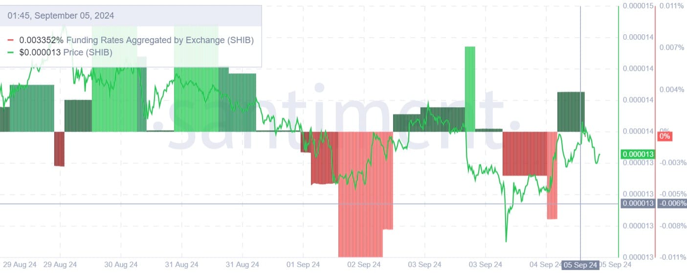 For starters, Shiba Inu’s Funding Rate, aggregated by exchange, was positive at 0.003352% at press time. This suggested that long positions were paying short-position sellers to hold their positions.