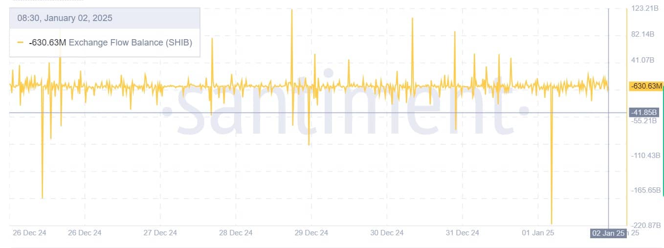 This accumulation trend is evidenced by the fact that transfers into exchanges have declined. Over the past week, SHIB’s exchange outflow has spiked, with the flow exchange balance turning negative.