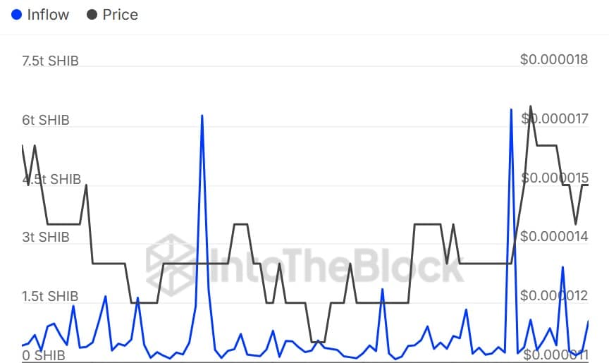 Therefore, if the trend continues as market participants turn to accumulation, we could see SHIB reclaim $0.0000158 in the short term. A move above this resistance will see Shiba Inu jump to $0.000017.