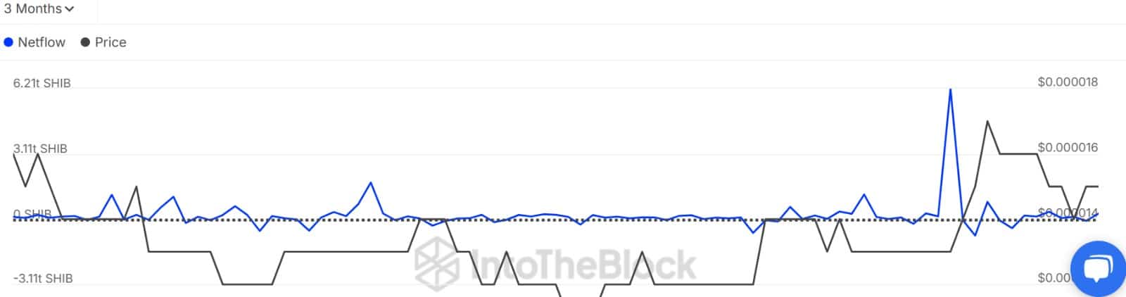 Over this period, the total netflow has reached 123 billion, signaling a massive exchange outflow. Inasmuch, more than 372 billion SHIB tokens have left exchanges, reflecting strong accumulation.