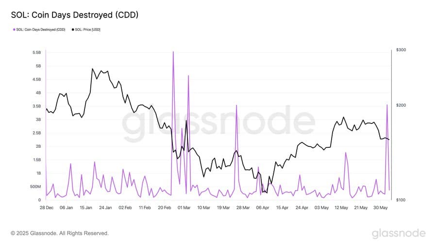 This is the third-largest CDD event for SOL, with $3.55 billion worth of tokens moved.