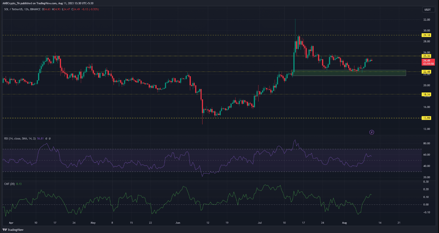 However, a notable challenge emerges as SOL inches closer to the $25.7 mark. The impending supply pressure at this level could potentially stall the upward momentum, prompting a sideways trend and leading to a consolidation phase.
