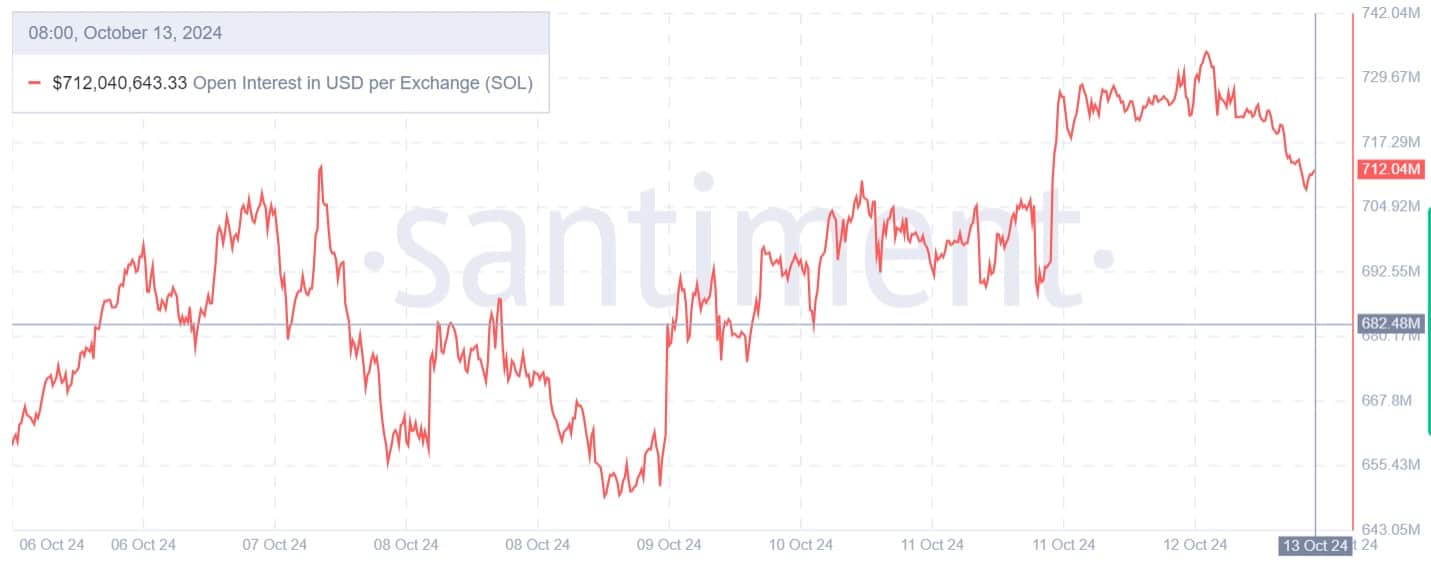 Finally, Solana’s Open interest in USD per Exchange has been rising over the past week. Open Interest has surged from a low of $649 million to $712 million.