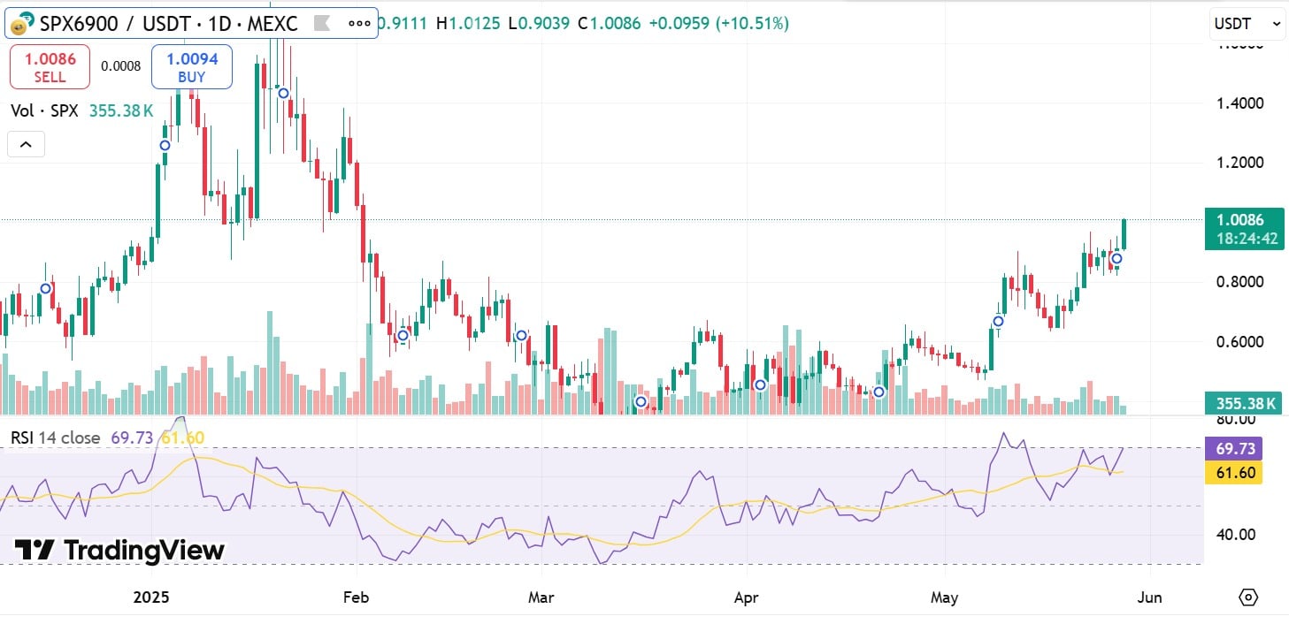 - SPX6900 surged 24% to hit $1.0179, with trading volume jumping 184.91% to $140.21 million.