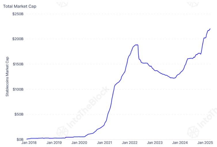Stablecoin Market Cap Growing, Surpasses $220 Billion