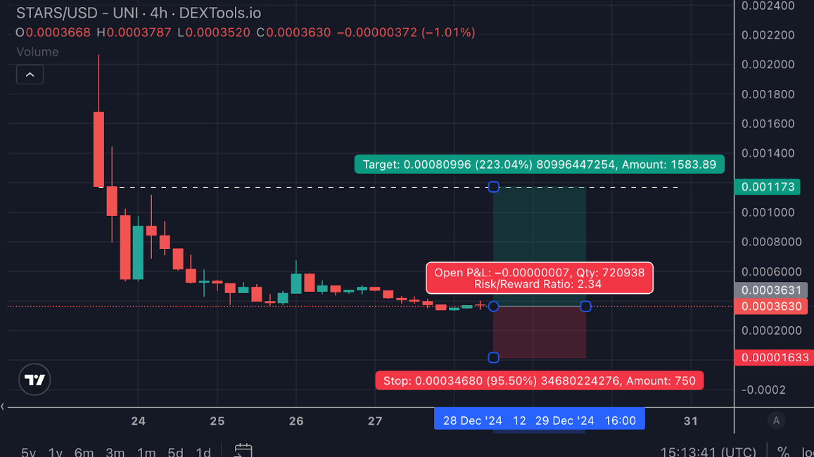 Shortly after the announcement, $STARS surged 22%, climbing to $0.00046 from its recent floor of $0.0003587. Bulls are now eyeing a return to the token’s listing price and potentially challenging its all-time high of $0.00206.