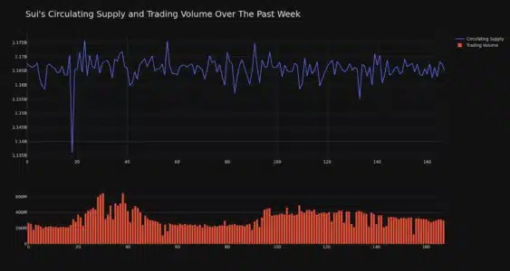 The chart below compares the price movement and volatility for Sui over the past 24 hours (left) to its price movement over the past week (right).