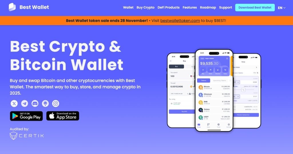 Best Wallet Token ($BEST) is a practical utility token built around a real product, the Best Wallet app. The mobile-first app is already live and supports over 50 major blockchains, including Ethereum, Solana, and BNB. It features a built-in DEX aggregator that scans more than 300 protocols to deliver the best swap rates for users.