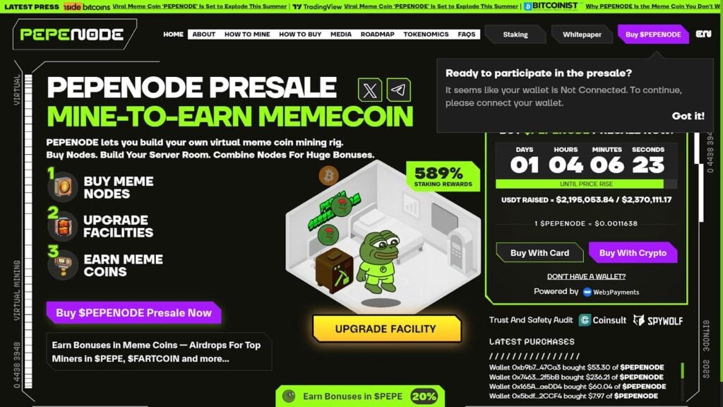 The Beta nodes are already live for testing, and the project has gained viral attention on X, with many calling it the “next Hamster Kombat” due to its early traction and engaging gameplay. What’s more, Pepenode makes mining accessible again by offering a virtual system that lets everyday users earn tokens and meme-coin rewards, without the need for hardware or electricity.
