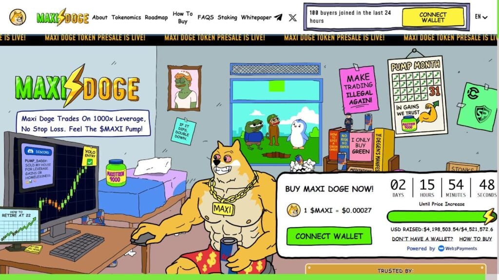 Its presale, which began in July 2025, has already raised over $4.1 million, indicating investors’ interest and strong momentum. One $MAXI is currently priced at $0.00027, and it can be purchased in exchange for ETH, USDT, USDC, or BNB.
