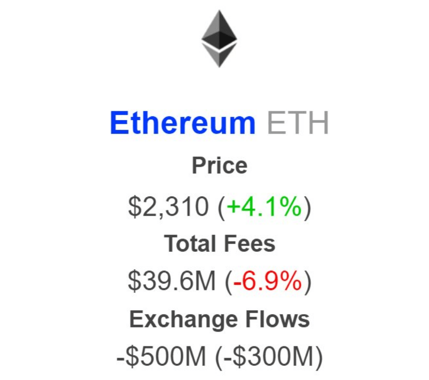At the time of writing, ETH was trading at $2,289, down 0.7% in the last 24 hours, but managed to gain 1.6% in the last week, data from Coingecko shows.