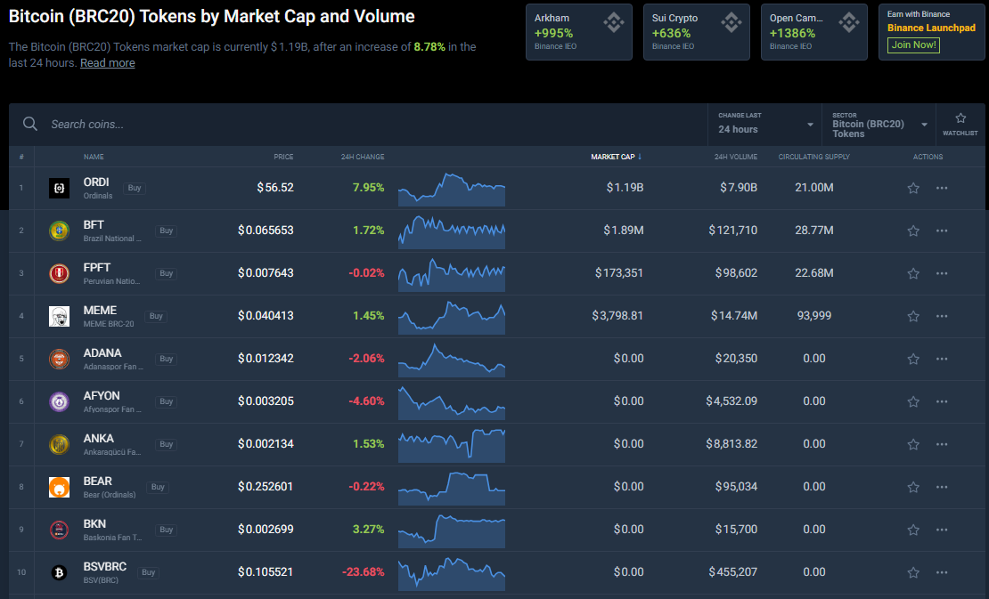 The ORDI token, which is based on Bitcoin Ordinals, has achieved triple-digit monthly and weekly percentage growth, making it the first BRC-20 token to surpass a $1 billion market valuation.