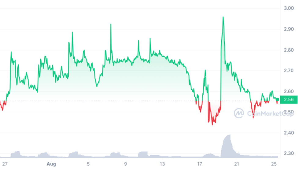 According to CoinMarketCap, BAR’s price was $2.55 at press time, This was a 3.27% increase in the last seven days. However, in the last 365 days, the token has lost 62.40% of its value. While this might look like an opportunity to accumulate at a discount, investors may need to be cautious.